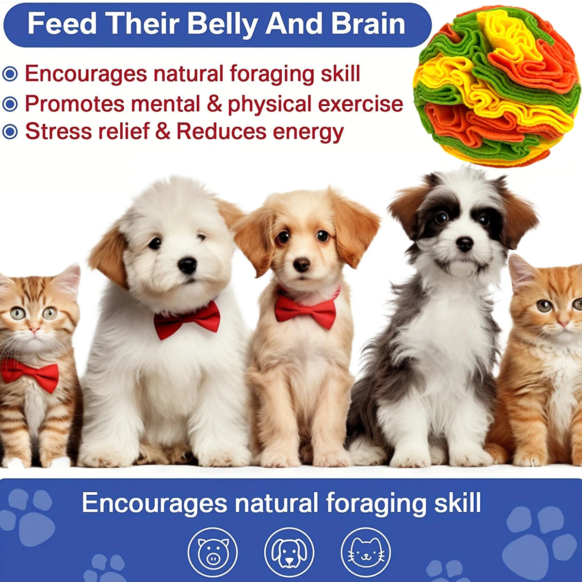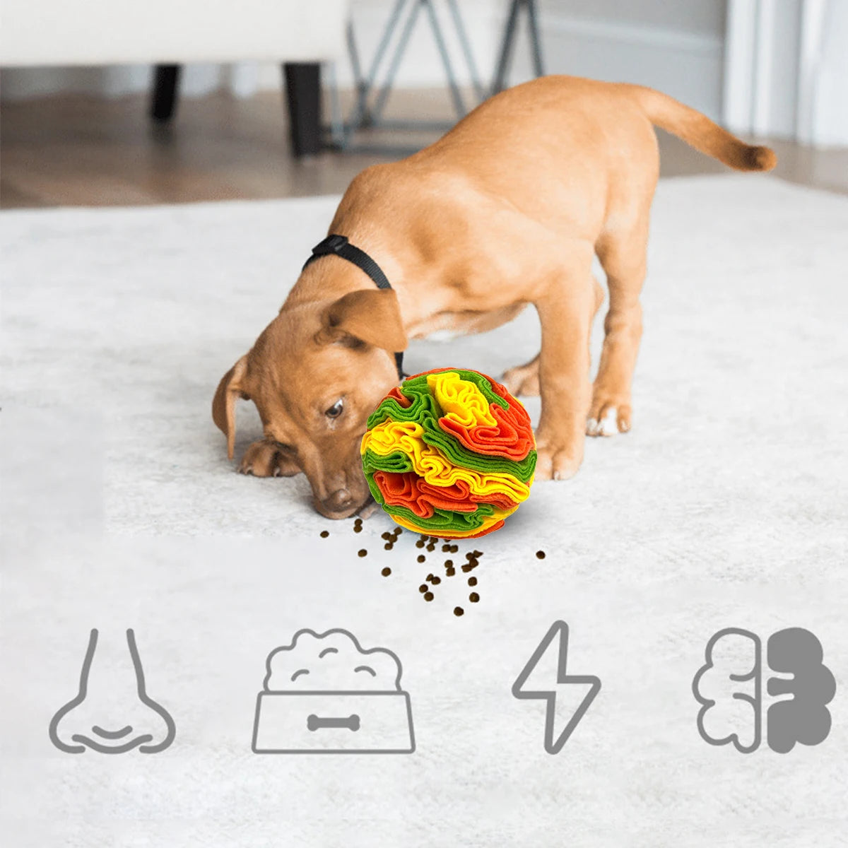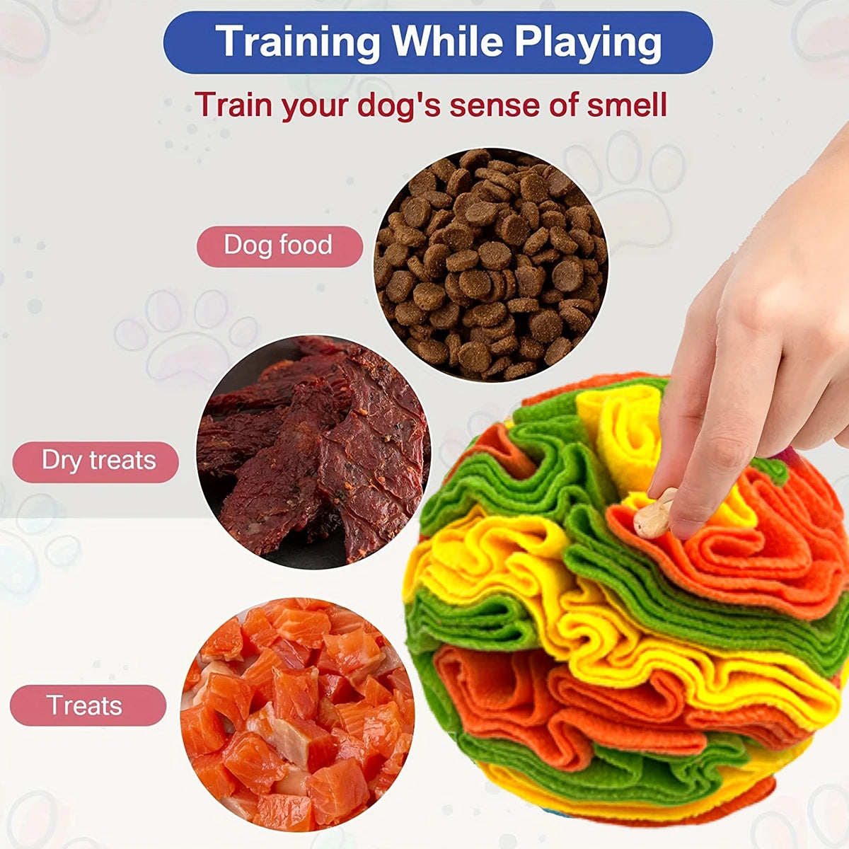 Tap into your dog's natural instincts with this engaging sniffing ball—a puzzle toy designed to stimulate foraging behavior and keep your pup mentally sharp. Crafted from soft fleece material, it's perfect for dogs of all sizes who love a rewarding challenge. Hide treats inside and watch your dog work to uncover them, turning playtime into an enriching activity that builds confidence and reduces boredom. No batteries needed—just fill, toss, and let the fun begin.