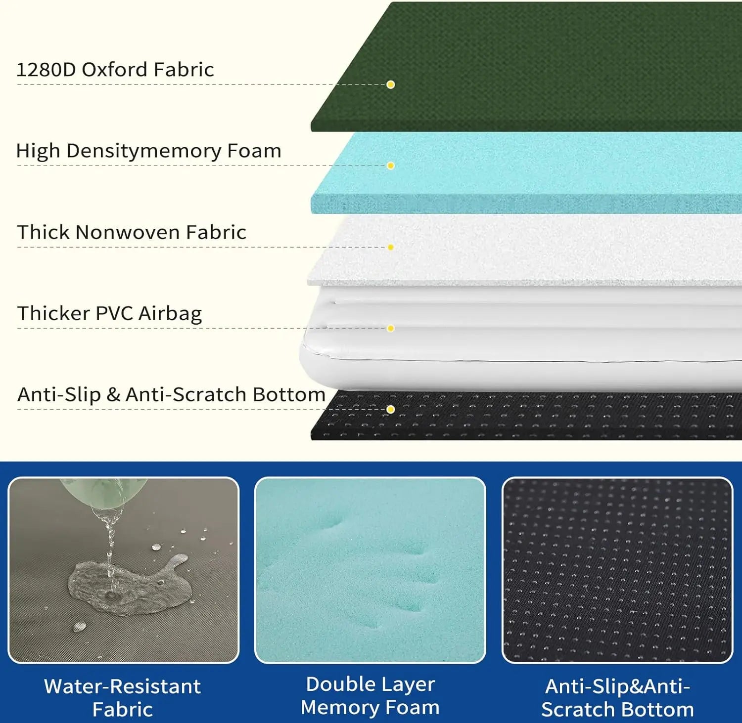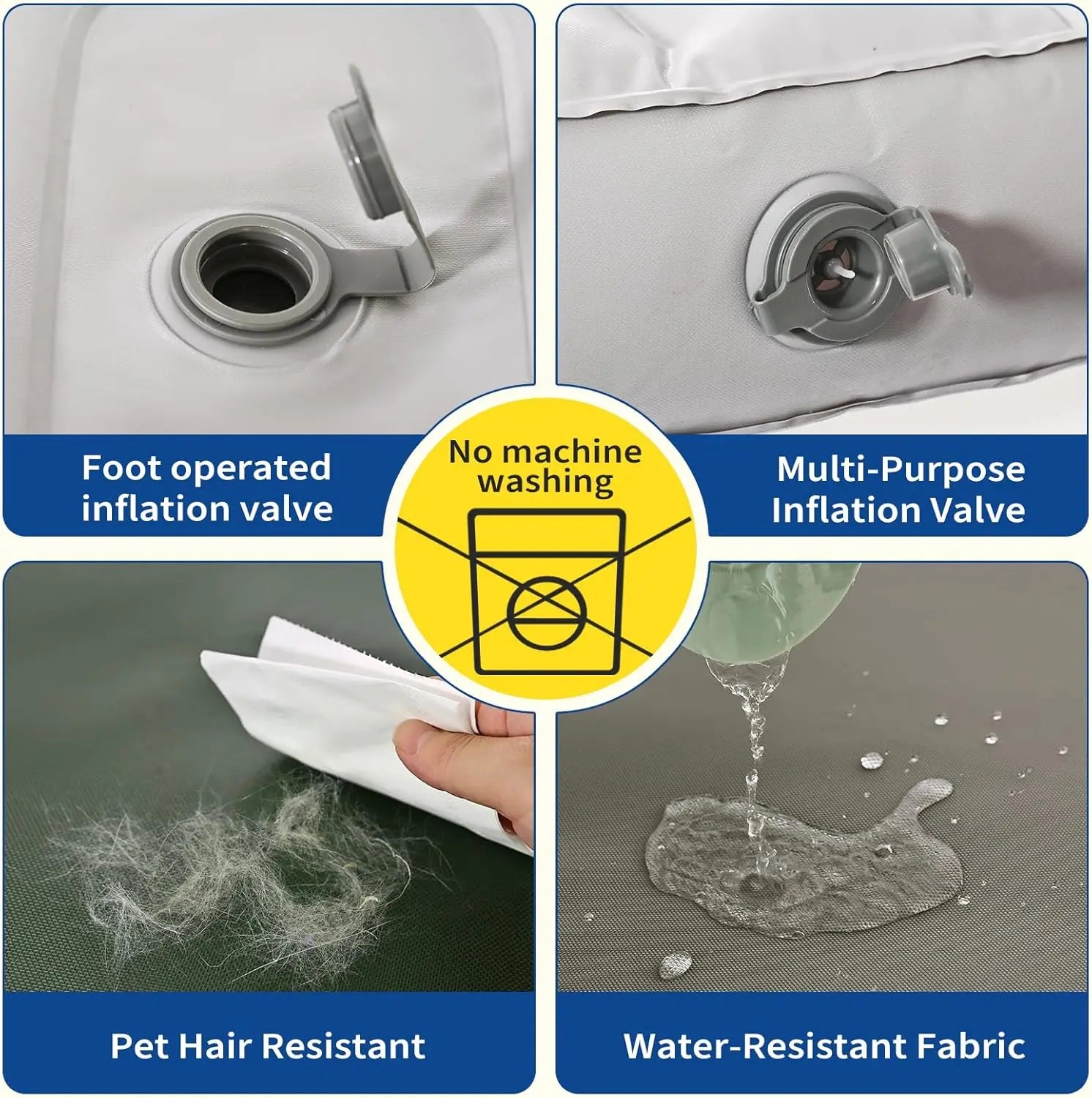 Designed for dogs who deserve comfort on the go, this inflatable pet bed combines memory foam support with durable, washable fabric for easy maintenance. The spacious rectangular design accommodates larger breeds while remaining lightweight and portable—perfect for travel, camping, or backyard relaxation. Soft yet resilient construction ensures lasting comfort through all seasons, making it an ideal resting spot for your furry companion wherever adventure takes you.